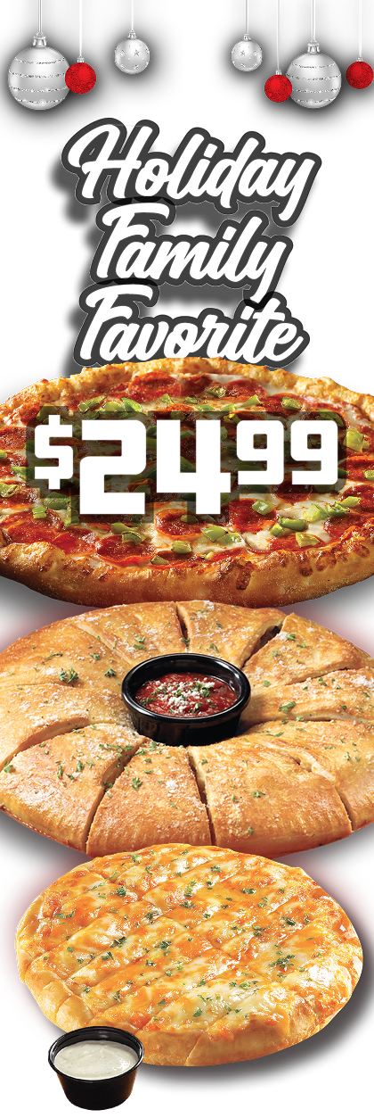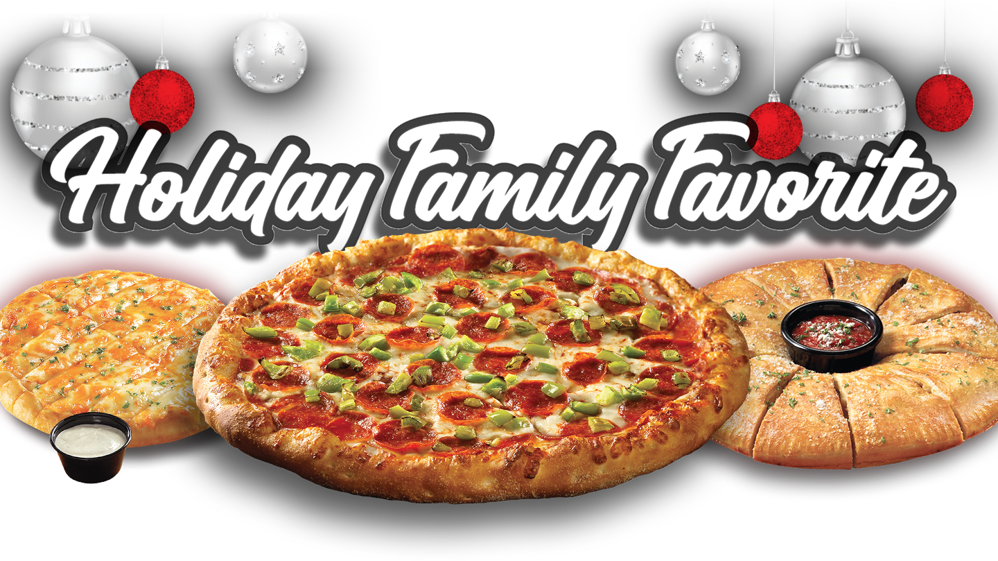 Mazzio’s Holiday Family Favorite is an annual tradition celebrating friends, family and fabulous food. A large 2-topping pizza, signature Calzone Ring® and 9” Cheese Dippers™.